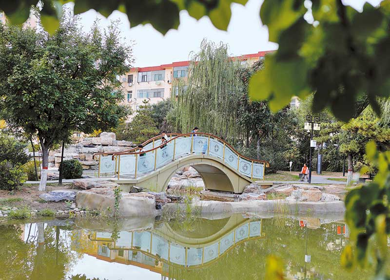 市民在市城區無暄園口袋公園漫步